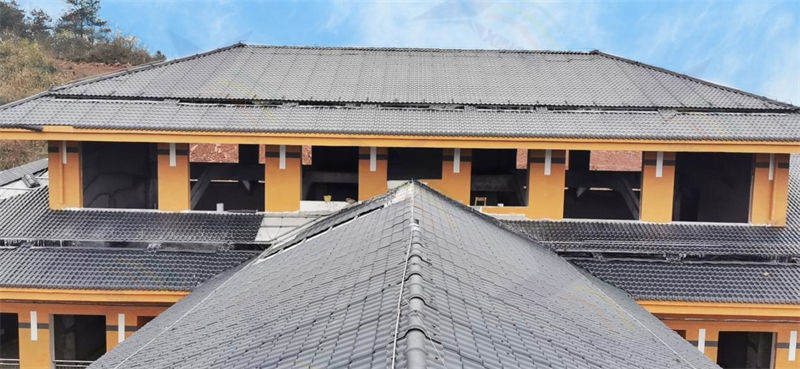 樹脂瓦采用高分子材料制成,具有致密的結(jié)構(gòu),不吸水,從材料本身就具備了防水功能。即使在沒有防水層的情況下,樹脂瓦也能達(dá)到良好的防水效果。這一特點(diǎn)使得樹脂瓦在防水性能上表現(xiàn)得尤為出色,徹底解決了屋面漏水的問題。